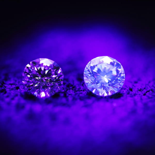Diamond Fluorescence: Diamond fluorescence is the phenomenon where a diamond emits a blue glow when exposed to ultraviolet light. Fluorescence can have a positive or negative effect on a diamond’s appearance, depending on the strength and quality of the fluorescence. A diamond with strong blue fluorescence can appear hazy or milky in sunlight and is generally considered less valuable. However, diamonds with faint or medium blue fluorescence can enhance a diamond’s appearance and may not affect its value.