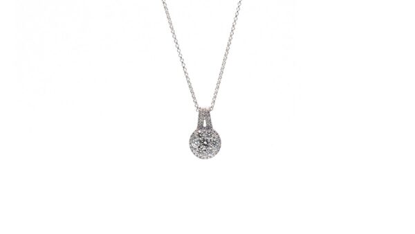 A stunning 18k white gold cluster pendant that catches the light effortlessly, adding brilliance to every step.