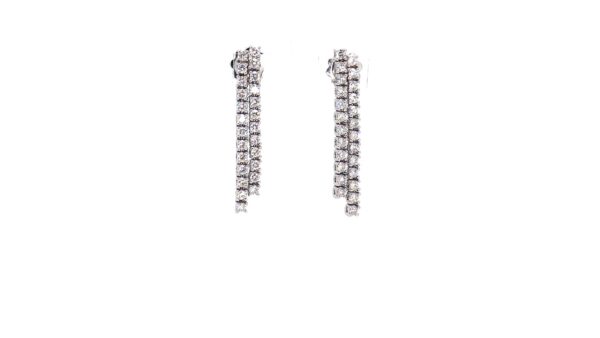 A stunning pair of diamond drop earrings — elegant when worn alone, or perfectly complemented by the matching pendant and rings to complete the look.