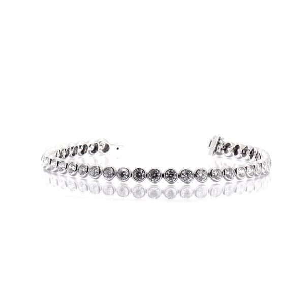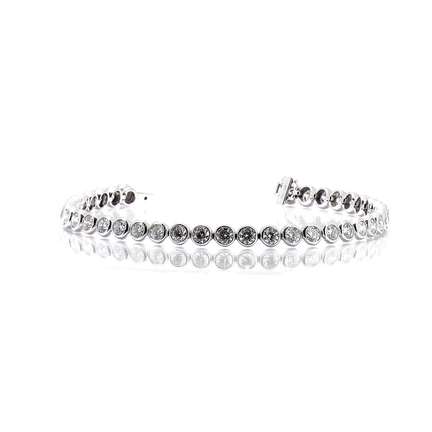 Embrace the elegance of the 12.76ct Bezel Bracelet by Smith & Green — a refined masterpiece that blends timeless charm with modern sophistication. Crafted in 18k white gold and set with the finest round brilliant diamonds, each stone sparkles like morning dew in sunlight. This 7-inch bracelet offers effortless style, from everyday refinement to evening glamour, and is destined to become a cherished heirloom.