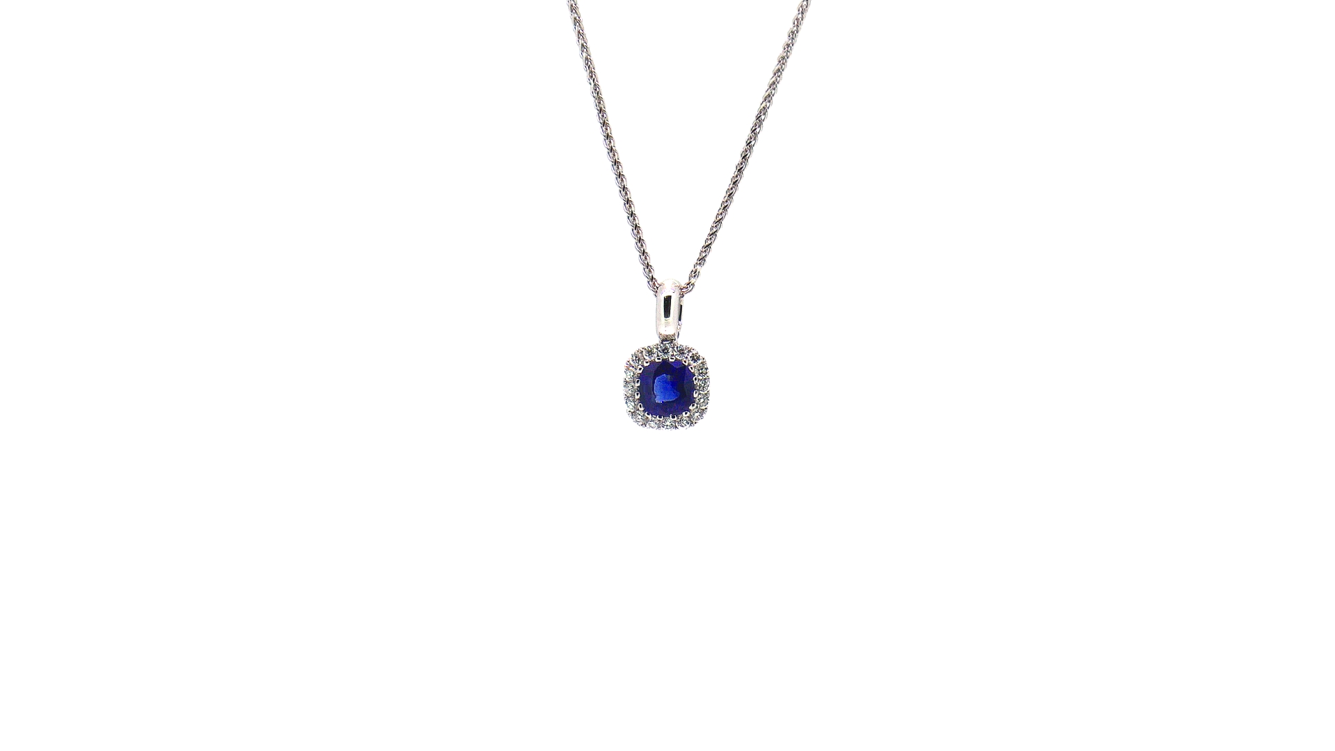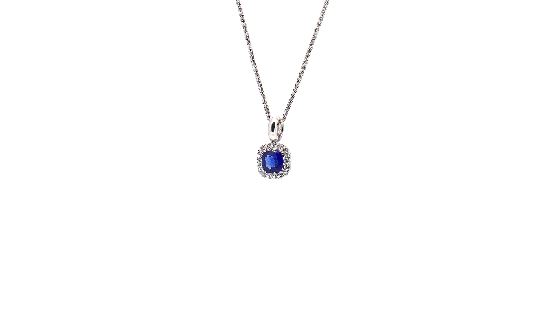 18k White Gold with Natural Blue Sapphire and White Diamond