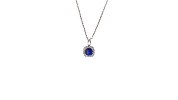 Royal blue sapphire and shimmering diamonds come together in this captivating pendant. The Smith & Green sapphire and diamond halo pendant can be worn solo or layered for a bolder statement. A meaningful gift to symbolise true love or mark a special life occasion, this elegant piece is designed to be treasured for generations.