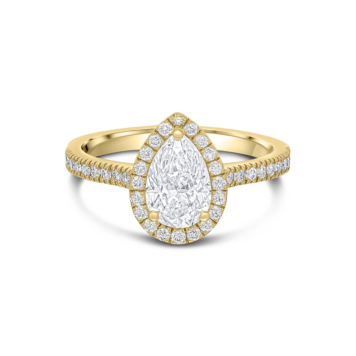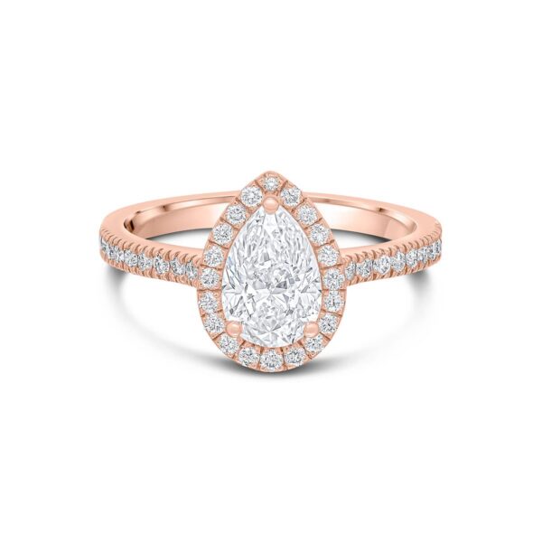 The Carson engagement ring is an exquisite piece that showcases a captivating 1.00 carat F SI1 Ex Ex Brilliant Pear Cut diamond. This ring radiates elegance and sophistication, with its unique pear-shaped diamond combining the brilliance of a round cut with the distinction of a marquise. The diamond’s exceptional cut and clarity ensure a dazzling display of light, making it an eye-catching centrepiece. Perfect for those seeking a blend of classic charm and contemporary flair, the Carson ring is a symbol of enduring love, sure to leave a lasting impression on your loved one.