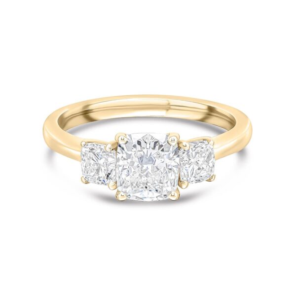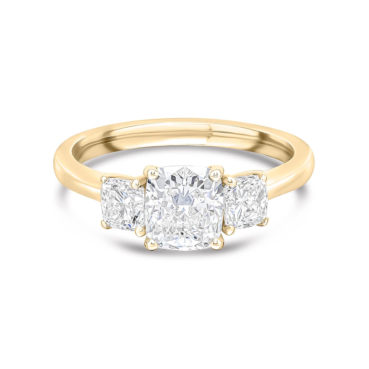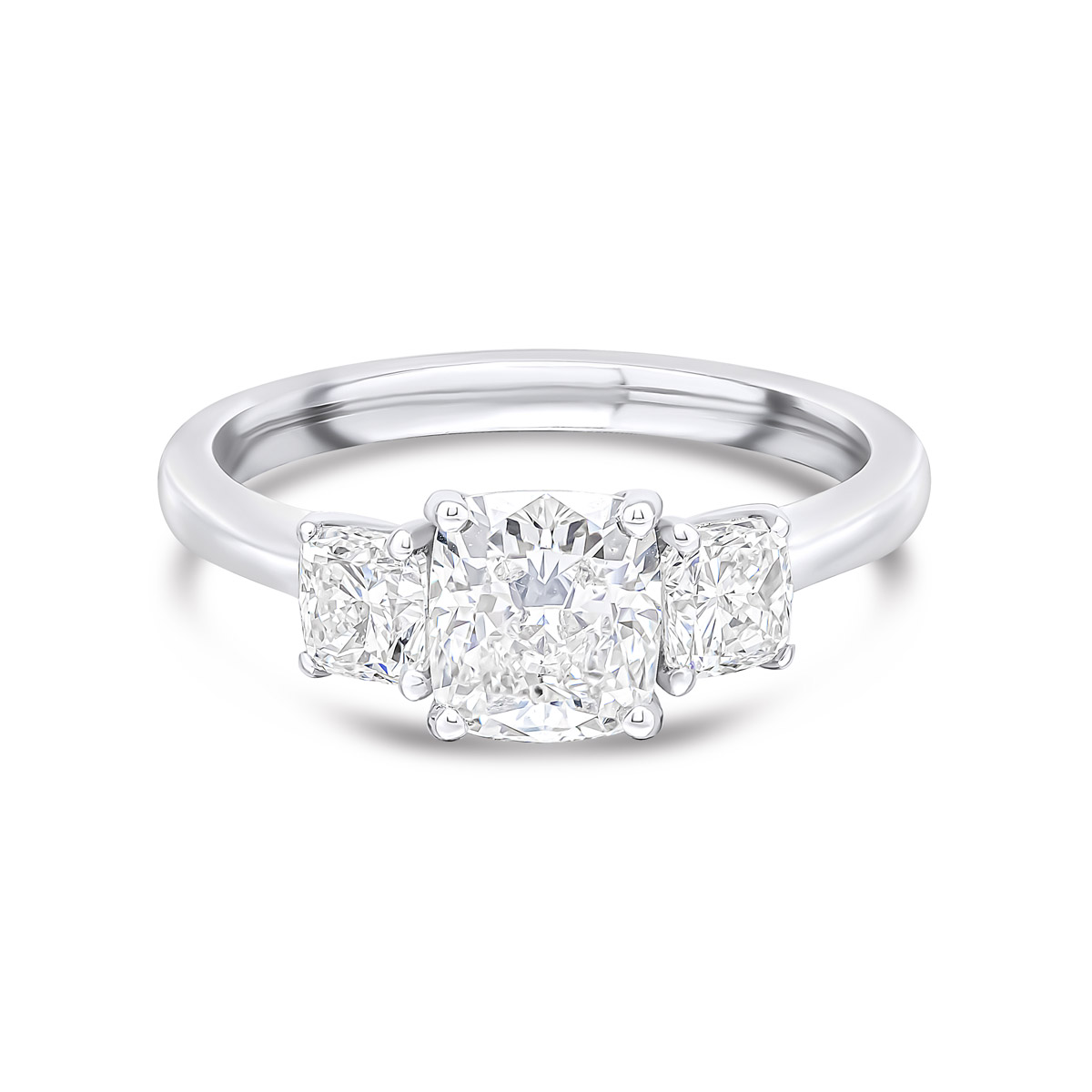 The Havana engagement ring is a masterpiece of elegance and sophistication. It features a dazzling 1.20 carat F SI1 Ex Ex N cushion brilliant central diamond, complemented by 0.78 carat side stones in a harmonious trilogy setting. This ring beautifully combines the classic appeal of the cushion cut with a modern twist, offering a brilliant display of light and clarity. The trilogy design symbolises a couple’s past, present, and future, making it a deeply meaningful choice. Perfect for those who seek a ring that balances traditional charm with contemporary flair, the Havana is sure to captivate and enchant your loved one.