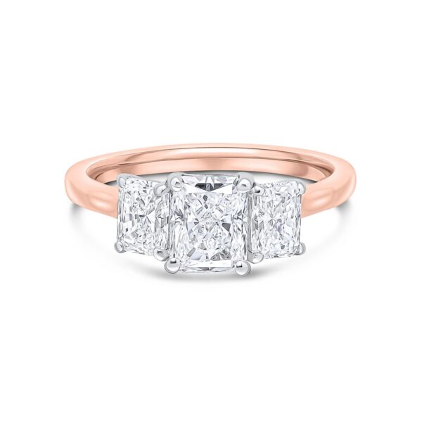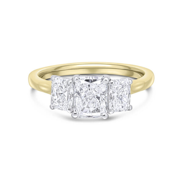 The Naples is a captivating trilogy engagement ring that features a 0.82 carat F VS2 GIA certified Radiant Cut diamond. This ring is a harmonious blend of contemporary style and classic elegance. The Radiant Cut diamond is renowned for its vibrant brilliance and crisp, clean lines, offering a modern twist on traditional luxury. It’s flanked by two complementary stones, symbolising a couple’s past, present, and future. Crafted for those who appreciate a ring that tells a story, the Naples is not just a piece of jewellery but a testament to a lifelong commitment, sure to leave a lasting impression on your beloved.