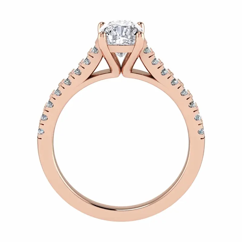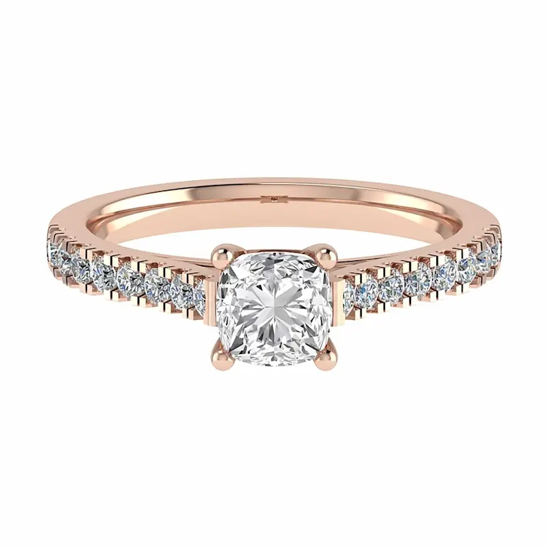 A classic four-prong basket solitaire for cushion-cut diamonds with a slightly rounded band and elegant clean profile.