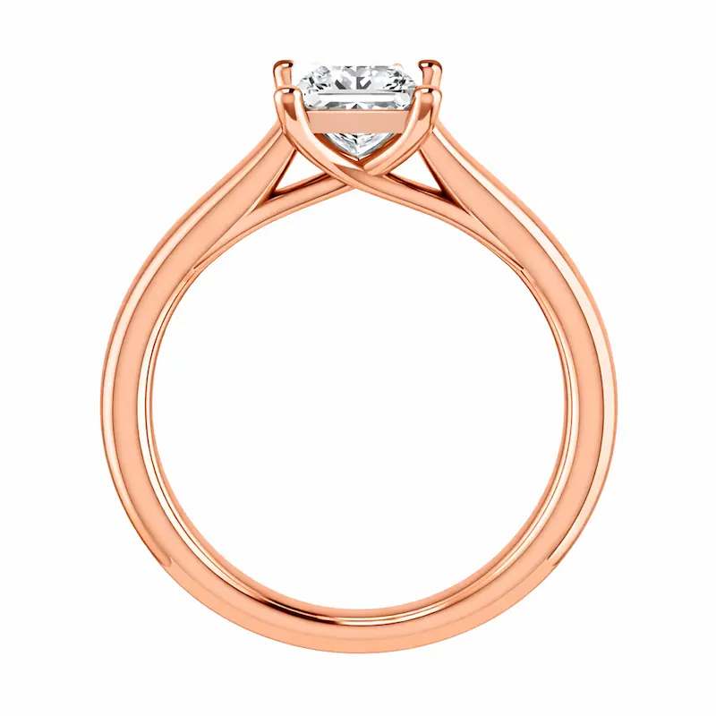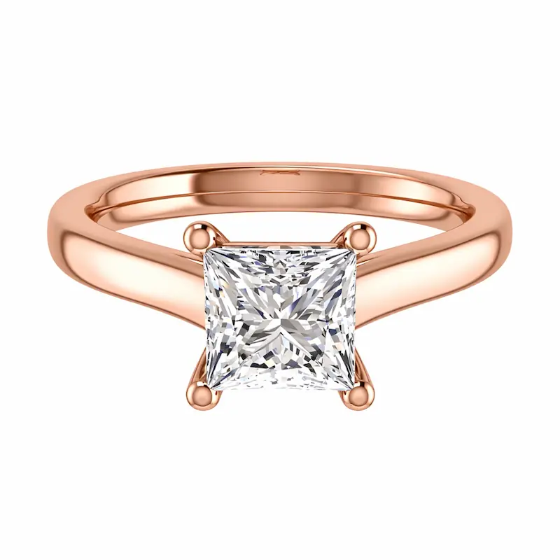 A geometric side-stone setting with channel-set princess-cut diamonds along the band, creating clean modern lines.