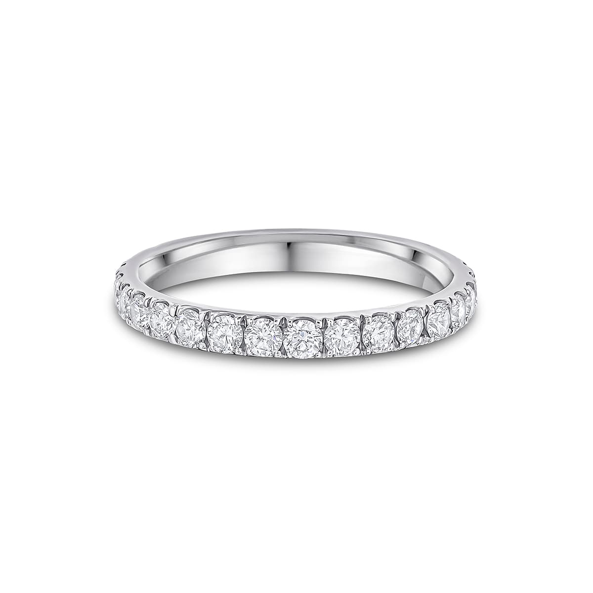 The Monroe ring captures understated glamour in its purest form. Handcrafted in platinum, this elegant half-eternity band features .44 ct of G VS round brilliant diamonds, precisely set to deliver balanced sparkle and timeless sophistication. Its refined silhouette makes it ideal for stacking, pairing with an engagement ring, or wearing alone as a statement of effortless luxury.