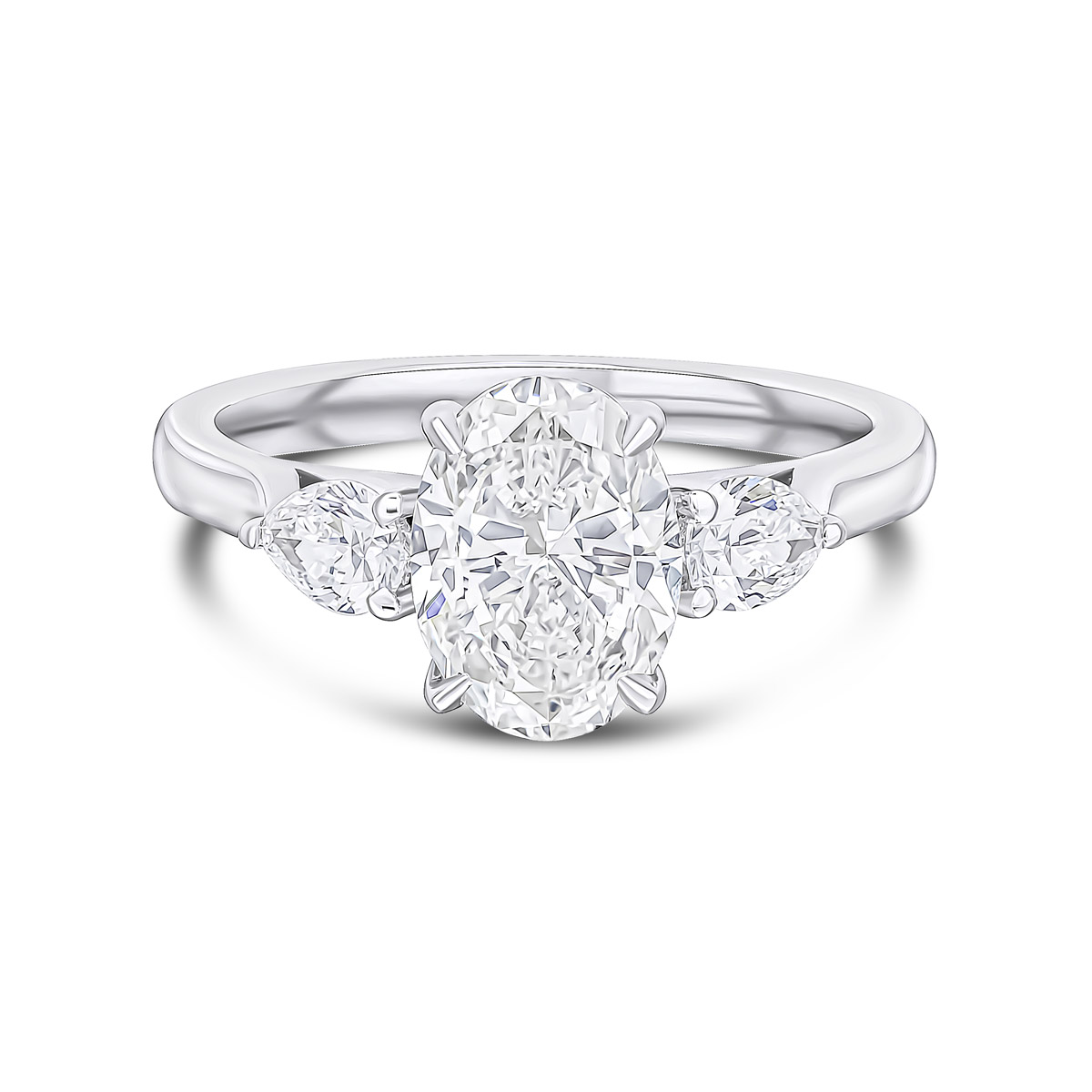 Introducing the enchanting ‘Valletta’ engagement ring, an embodiment of classic elegance and enduring beauty. Masterfully crafted in platinum, this ring centres around a magnificent 1.50ct classic oval-cut diamond. This exquisite stone is GIA graded D, signifying its remarkable purity, and VS2, highlighting its captivating brilliance. The Valletta ring is further enhanced by its unique combination of oval and pear brilliant cuts, creating a dazzling display of light and luxury.