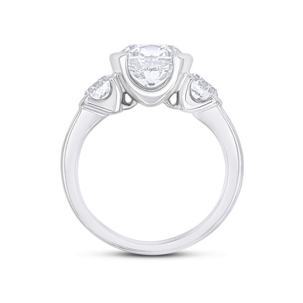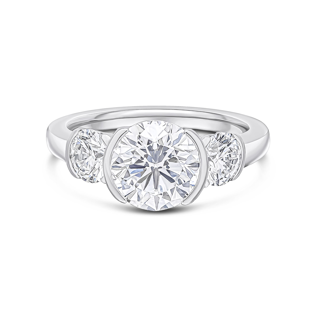 The Verona engagement ring is a breathtaking example of luxurious design, featuring a 2.01ct F SI2 Vg Ex Ex N HRD certified Round Brilliant diamond, complemented by 0.80ct of side stones in a stunning trilogy setting. Crafted in platinum, this ring exudes elegance and prestige. The central Round Brilliant diamond sparkles with exceptional brilliance, while the side stones add to its grandeur, creating a harmonious balance of sparkle and sophistication. This trilogy design represents the past, present, and future, making the Verona ring not just a piece of jewellery but a symbol of enduring love and commitment, perfect for a truly impressive proposal.