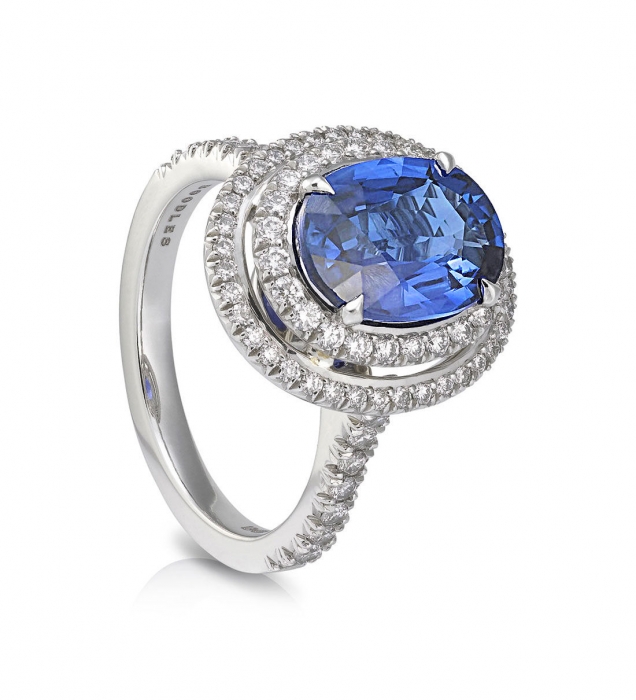 This breathtaking ring by Bulgari features a 10.95-carat Burmese blue sapphire alongside a diamond of a similar size. Both stones are set in gold. It fetched an impressive £1.9 million at Sotheby’s in 2018.